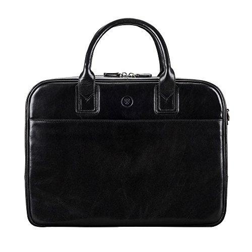 La sacoche ordinateur 15 pouces Maxwell Scott en cuir pleine fleur noir ou marron avec tannage artisanal et végétal est conçue selon le savoir faire des maîtres tanneurs italiens, avec anses.