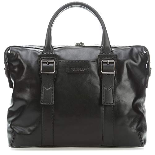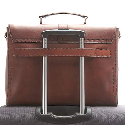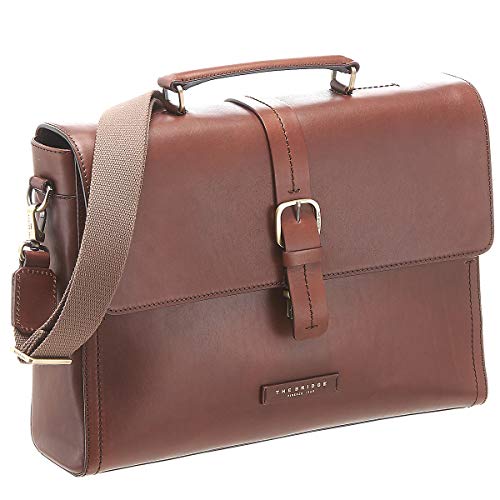 Autre serviette avocat qui se glisse aussi sur le manche de votre valise trolley, la serviette signée The Bridge en cuir marron clair :