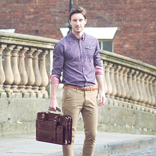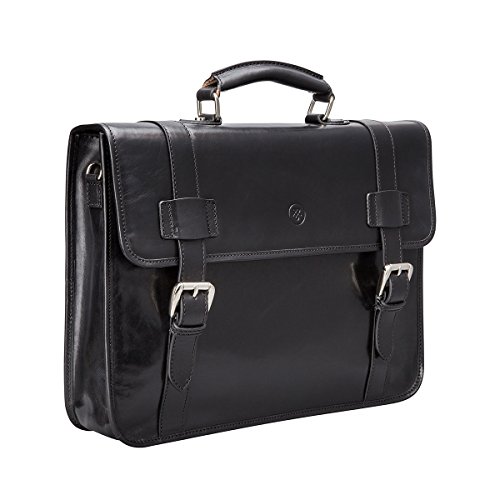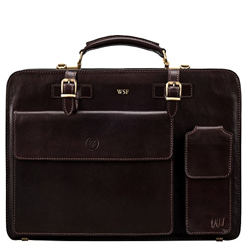 La sacoche cuir classique avocat Maxwell Scott avec large ouverture à 2 soufflets vous habille avec classe et élégance :