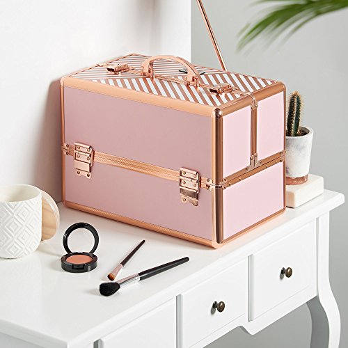 Cette mallette maquillage beauté Songmics, compacte avec cadre aluminium renforcé, existe en noir et aussi en violet dans des variations de taille et de couleurs. Comme ici la beauty case en rose alu :